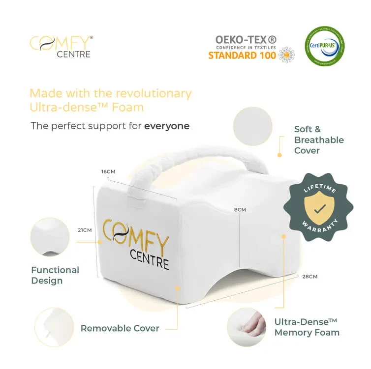 Eine wunderbare, ungestörte Nacht ohne Schmerzen und Irritationen. Verabschieden Sie sich von Knie-, Hüft- oder Rückenschmerzen und geben Sie Ihrem Körper den Komfort, den er verdient. Dieses orthopädische Kniekissen mit Band sorgt für eine optimale Schlafposition und hält das Kissen dank des dehnbaren Bandes immer gut in Position.