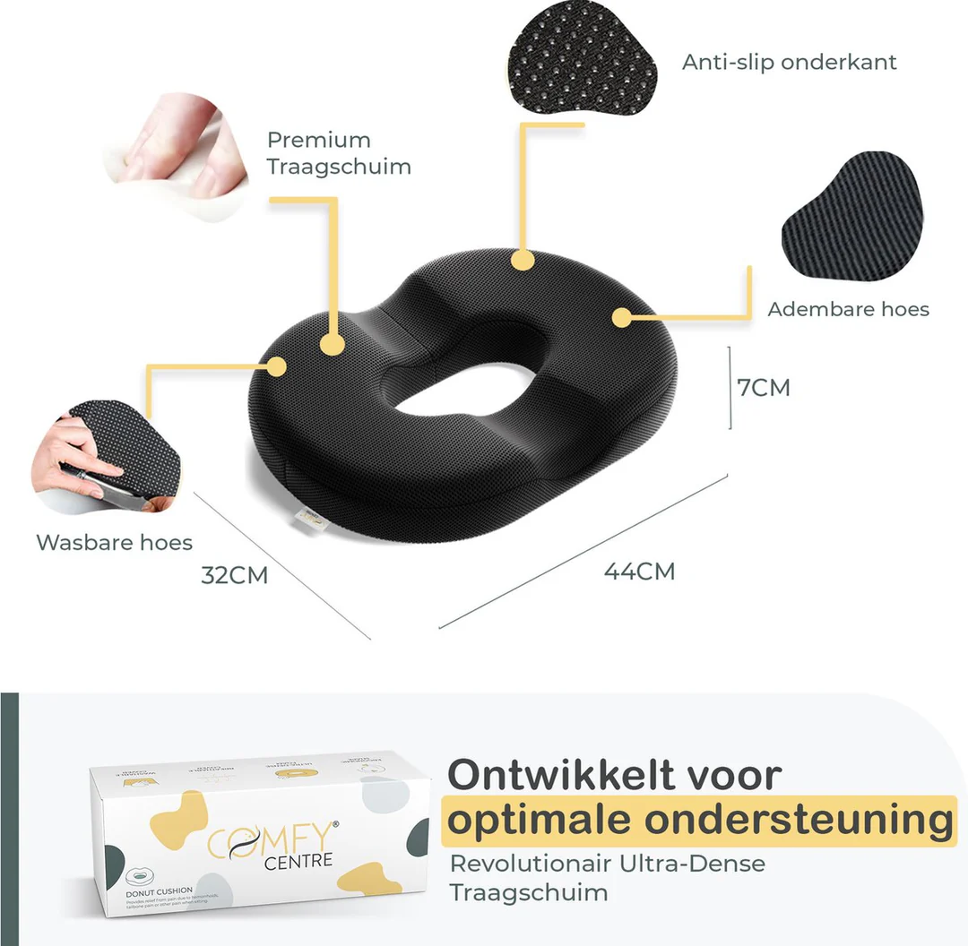 This ergonomically designed seat cushion reduces pressure on the tailbone, lower back, and pelvis, allowing you to sit comfortably—at home, at the office, or on the go. The high-quality memory foam adapts perfectly to your body, providing lasting support without losing its shape. Ideal for tailbone pain, hemorrhoids, pregnancy, or post-surgery recovery.